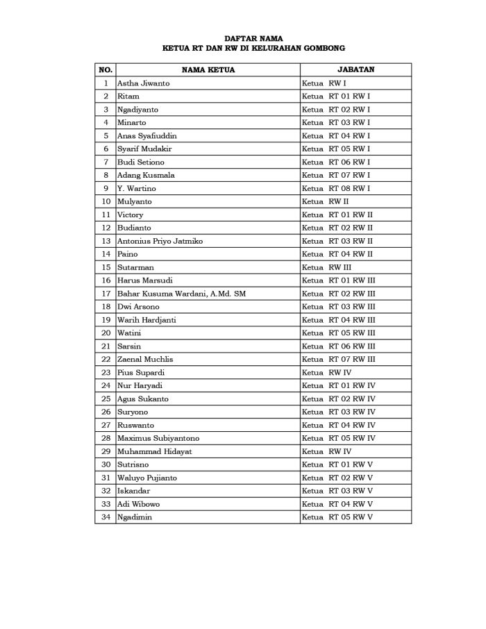 Profil Kelembagaan Kelurahan Gombong